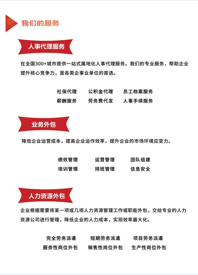 济南邦孚服务外包有限公司坚持专注人力资源服务,成立至今先后为上万家企业提供优质的人力资源服务,已在业界赢得了良好的口碑。并且荣获诚信企业、十强中介、服务外包重点培育单位等的授信和表彰。公司对外服务范围:“工资代发、人事代理、五险一金代理、人力资源、劳务派遣、劳务外包、项目外包、业务外包、灵活用工、薪酬外包、薪资代发、人事外包、人力资源服务外包、薪酬代发、业务流程外包、个税优化、劳务费代发、岗位外包”等。目前与邦孚人力建立人事外包合作客户近万家,雇员数十万人。人力资源服务覆盖了人员招聘、面试、测评、培训、体检、档案整理、工资、五险一金、合同、辞职及其他跟踪服务。